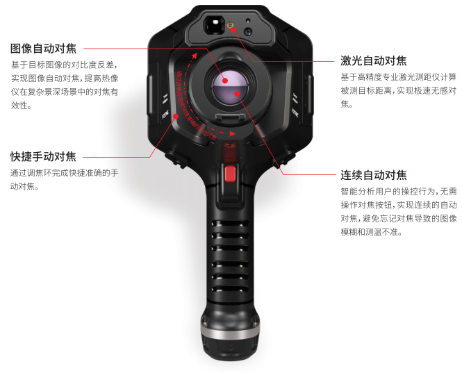 FOTRIC全新打造的TurboFocus智能對(duì)焦系統(tǒng),充分融合圖像自動(dòng)對(duì)焦和激光自動(dòng)對(duì)焦的優(yōu)點(diǎn),并以智能連續(xù)對(duì)焦的方式,保證成像清晰,避免對(duì)焦不準(zhǔn)造成的測(cè)溫誤差。