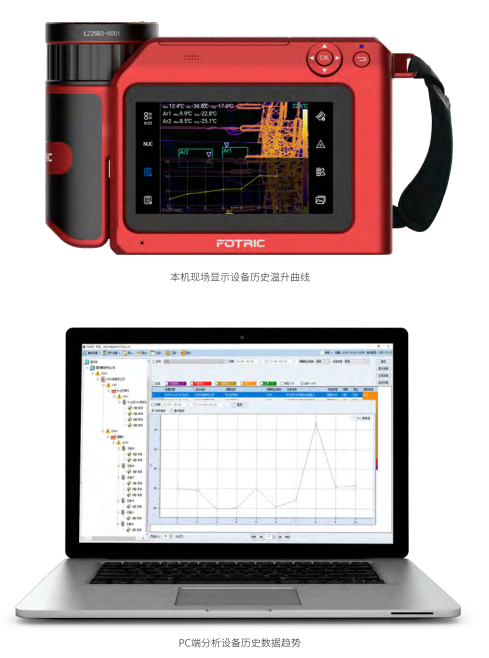 FOTRIC 350X云熱像“慧"預測,現場可直接顯示設備歷史數據趨勢圖,輔助用戶預測帶電設備未來狀態;