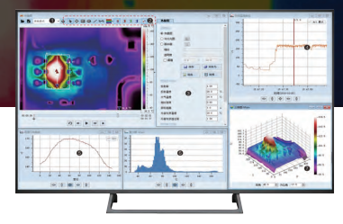 原始溫度數據矩陣畫中畫與畫面融合可對全輻射熱像視頻進行溫度趨勢分析、線溫分布分析、直方圖分析、三維圖分析等多種分析功能 。