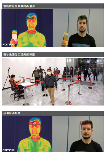無須接觸待測人員,保障探測人員的自身安全,全程無感測溫;毫秒級響應,完全不影響人群的通行效率和行為習慣 。