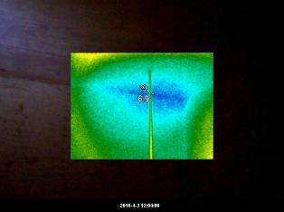 先將屋頂分為幾個區域,在現場操作只需兩名操作人員:一位在樓頂對待確認區域澆熱水,還有一位在房間內對滲漏部位進行熱像跟蹤,當滲漏區域被澆上熱水后,5分鐘內在房間進行熱像跟蹤的人員就可以發現至少0.7℃以上的溫升。