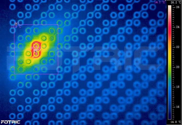 FOTRIC紅外熱像儀能夠直觀發現萬孔板熱點,診斷萬孔板和層之間短路、絕緣、缺陷等問題。