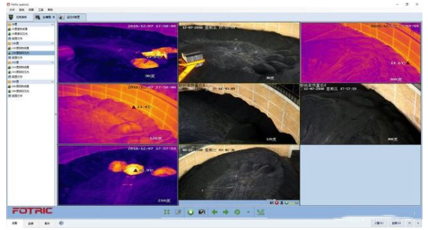 .圓形煤倉采用三套 Fotric 826-L28-424 雙視云臺防火報警智能熱像(1 個煤倉 3 個),1 套 Fotric FAIRs-10 監(jiān)控軟件。